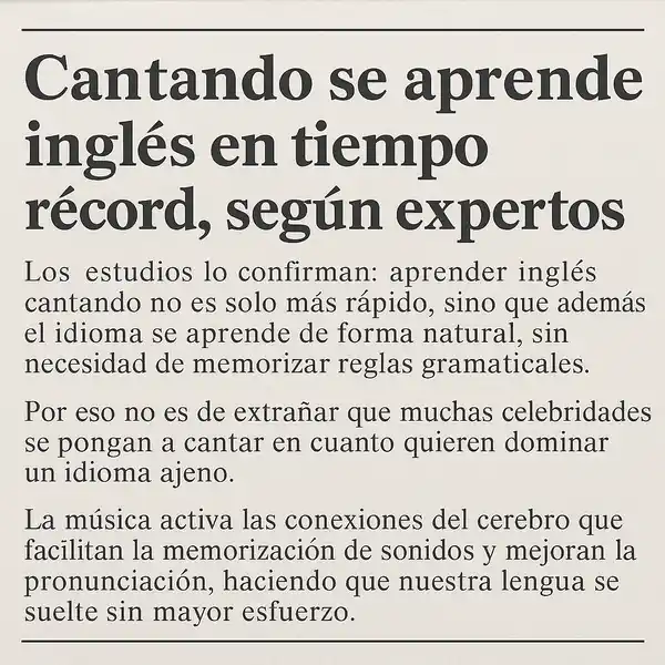 La música activa las mismas zonas cerebrales que usamos para hablar: escuchas, repites y tu lengua se suelta sin darte cuenta.